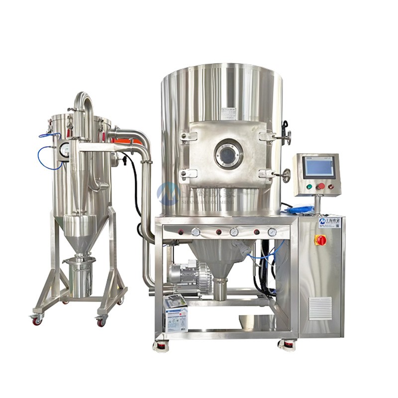 2、霧化:噴霧干燥機(jī)的霧化系統(tǒng)必須確保霧滴大小分布均勻,這是至關(guān)重要的。因?yàn)檫@樣才能確保產(chǎn)品質(zhì)量的合格率。