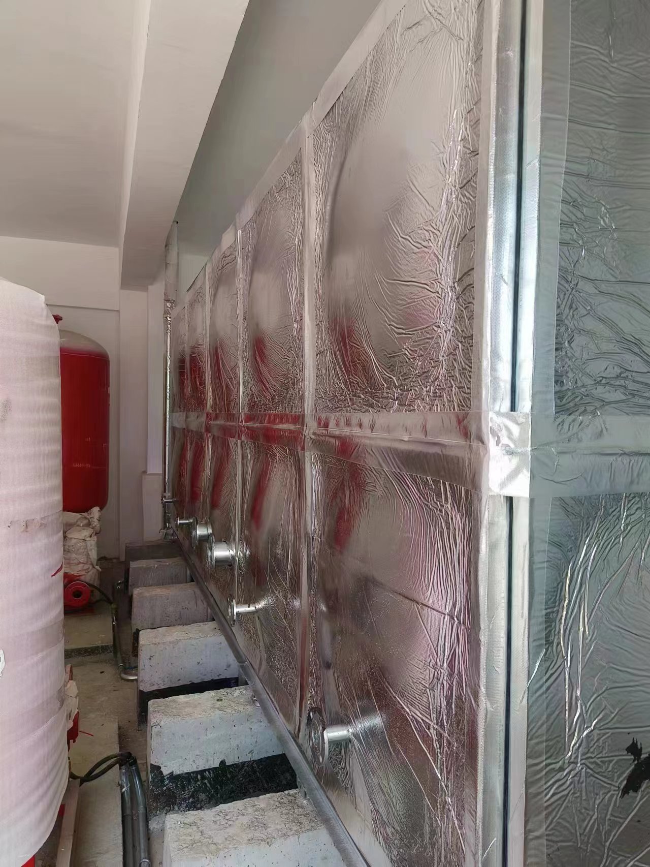保定高碑店潤豪錦公館樓頂消防水箱項目30立方鍍鋅橡塑鋁箔布保溫水箱已經安裝完畢,此次安裝的進度也非常快,在規(guī)定的時間內完成了安裝和試水,得到了客戶的認可。您的認可就是對我們鼓勵。